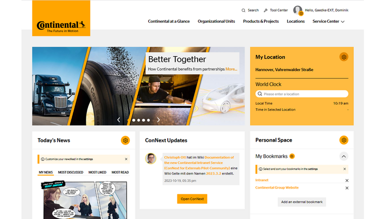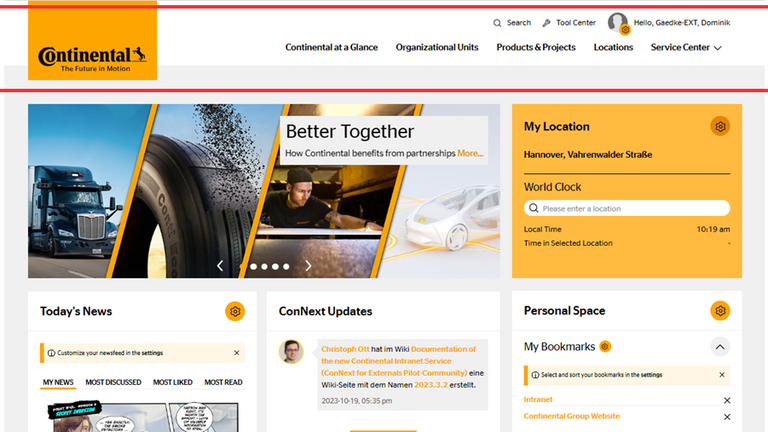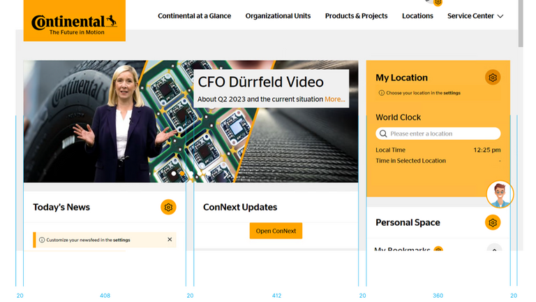 The Intranet Platform was built on a flexible grid system in an adaptive design that enables a tailored experience based on employee intent and context. The Header and Footer are designed both to transport brand messages and enclose the content optically.